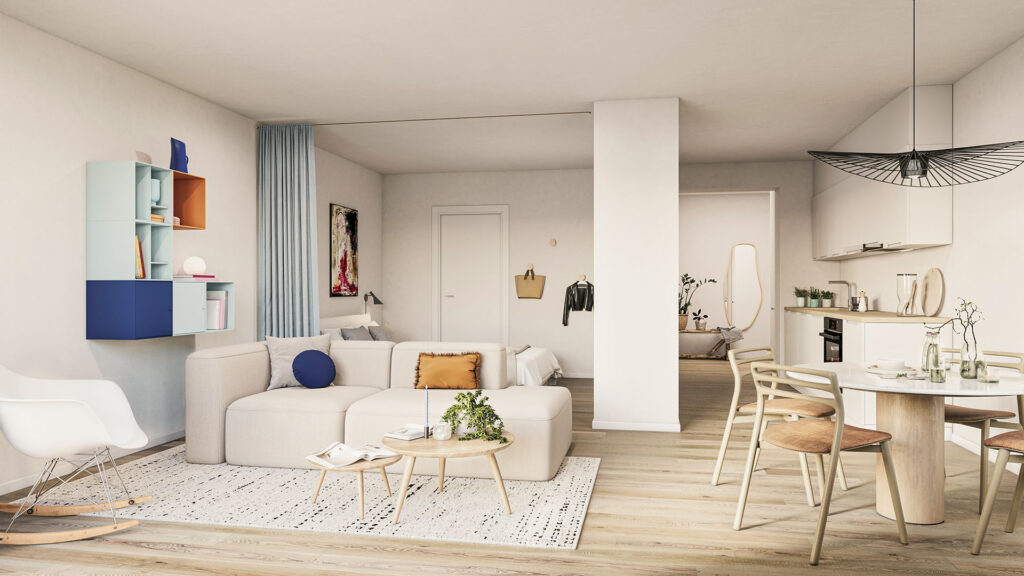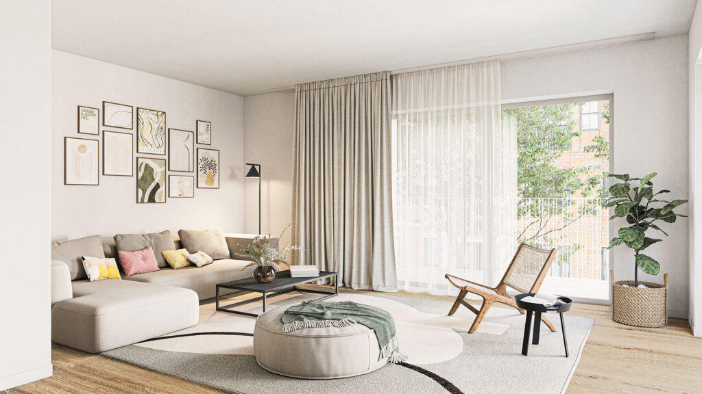 Som et arkitektonisk bagtæppe for grøn iscenesættelse, åbner boligerne sig mod det enestående parklandskab. Her kan du nyde naturen, mens du befinder dig midt i byens centrum.